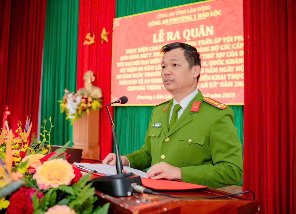 Đồng chí Đại tá Đậu Xuân Bảo - Phó Giám đốc Công an tỉnh phát lệnh ra quân tại Công an phường 1 - Bảo Lộc