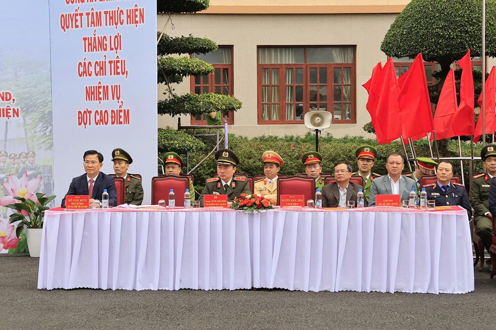 Phát biểu chỉ đạo tại buổi lễ, đồng chí Hồ Văn Mười - Phó Bí thư Tỉnh ủy, Chủ tịch UBND tỉnh đề nghị Công an tỉnh tiếp tục thực hiện tốt nhiệm vụ tham mưu Tỉnh ủy, UBND tỉnh chỉ đạo toàn diện, kịp thời các nhiệm vụ, giải pháp bảo đảm an ninh chính trị, trật tự an toàn xã hội; tham mưu huy động sức mạnh của cả hệ thống chính trị tham gia phòng ngừa, tấn công, trấn áp các loại tội phạm. Đồng thời yêu cầu các sở, ban, ngành, các địa phương căn cứ chức năng nhiệm vụ được giao chủ động chỉ đạo các đơn vị chức năng phối hợp chặt chẽ, hiệp đồng tác chiến hiệu quả với lực lượng Công an trong công tác phòng, chống tội phạm đảm bảo ANTT tại địa phương; giao lực lượng Công an toàn tỉnh phát huy vai trò nòng cốt, triển khai đồng bộ các biện pháp tập trung nắm chắc tình hình, chủ động từ sớm, từ xa, đảm bảo an ninh chủ động, tuyệt đối không để xảy ra đột xuất, bất ngờ trong mọi tình huống; bảo vệ tuyệt đối an toàn các mục tiêu, công trình trọng điểm, các sự kiện chính trị, kinh tế, văn hóa, xã hội, hoạt động của lãnh đạo Đảng, Nhà nước tại địa phương.