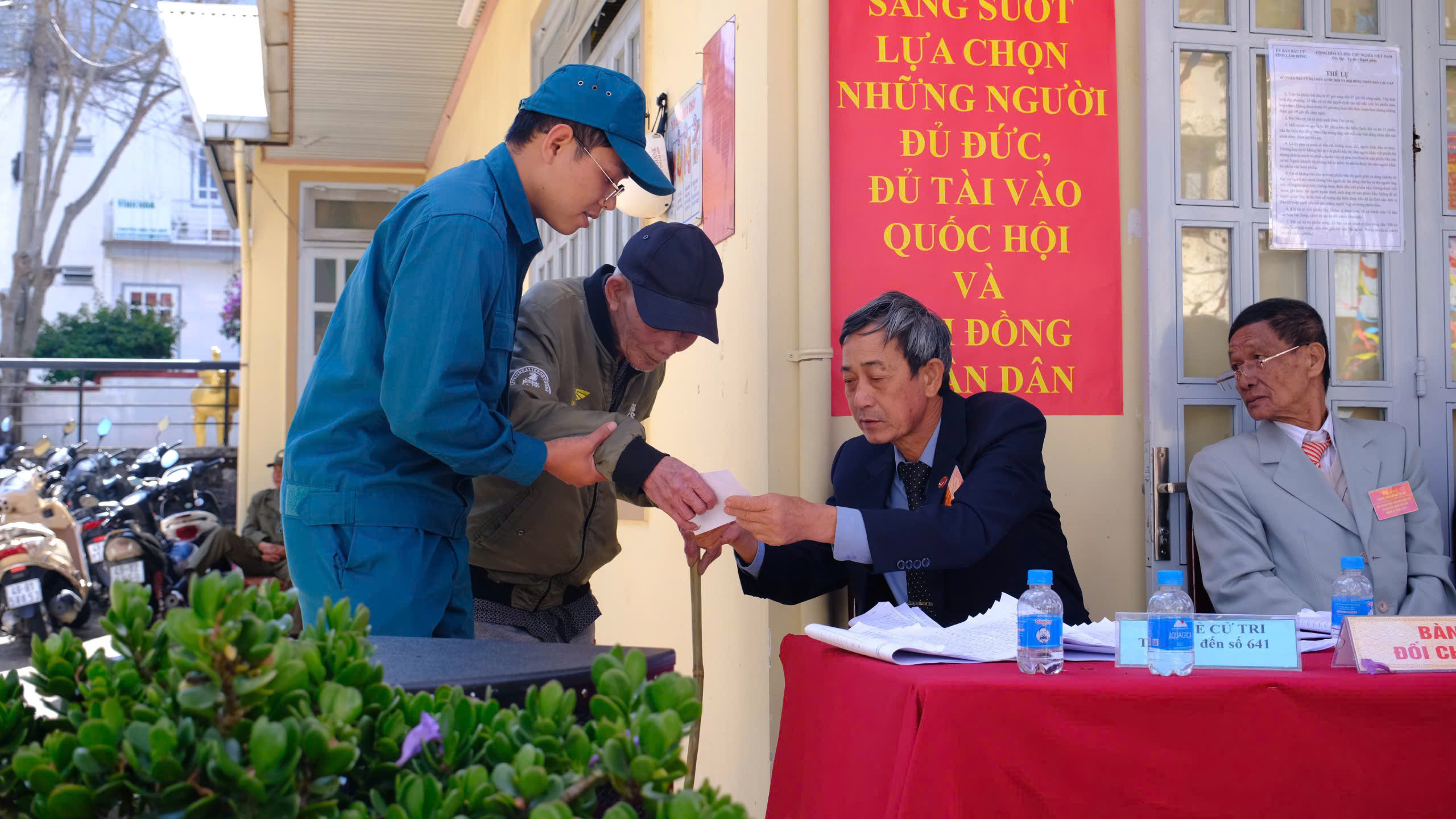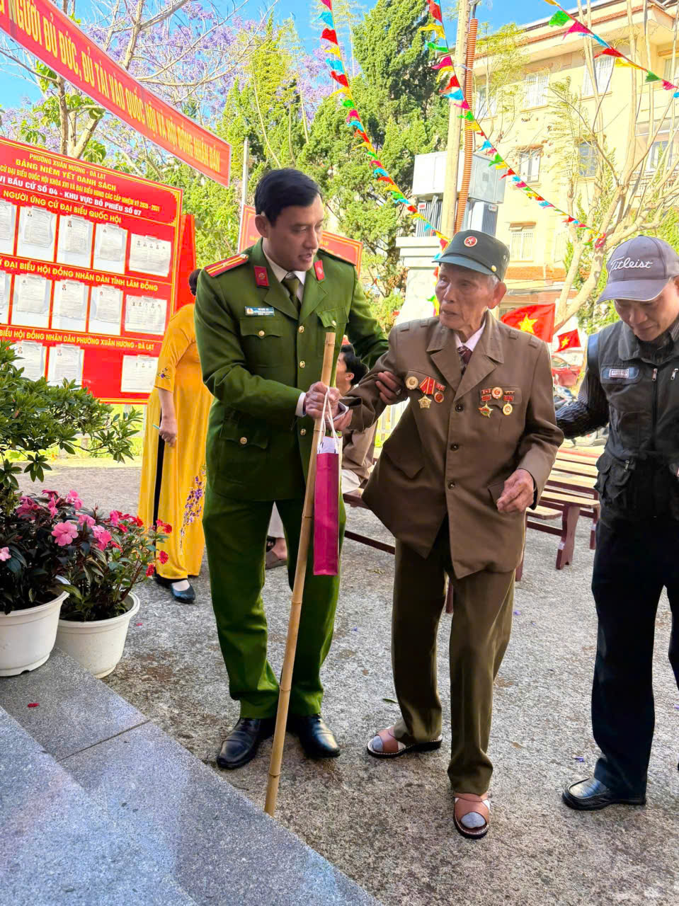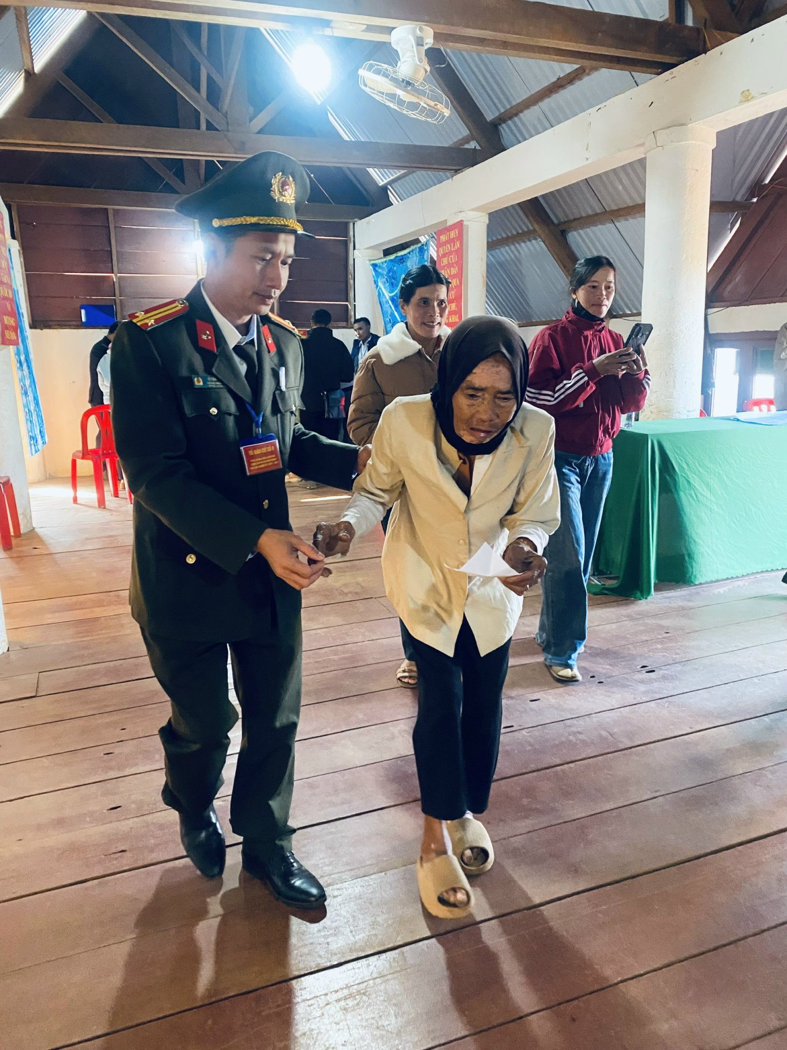 Tin tức - Sự kiệnBầu cử Quốc hội và HĐND các cấp Những hình ảnh đẹp của lực lượng Công an trong ngày bầu cử Your browser does not support the audio element.   16/03/2026 09:38 |   71 |  Cuộc bầu cử đại biểu Quốc hội khóa XVI và đại biểu HĐND các cấp nhiệm kỳ 2026 – 2031 tại Lâm Đồng đã diễn ra thành công tốt đẹp với 99,76% (2.572.624/2.578.925) cử tri tham gia. Với tinh thần trách nhiệm và sự chuẩn bị chu đáo, Công an tỉnh Lâm Đồng không chỉ hoàn thành xuất sắc nhiệm vụ bảo đảm an ninh trật tự mà còn hết mình hỗ trợ cử tri khi tham gia bầu cử, góp phần không nhỏ vào thành công chung của ngày hội. Dưới đây là những khoảnh khắc của lực lượng Công an tỉnh Lâm Đồng ghi nhận trong ngày bầu cử: Không ít hình ảnh xúc động đã được ghi lại trong ngày hội lớn của toàn dân: Những chiến sĩ Công an nhẹ nhàng dìu cụ già vào phòng bỏ phiếu; những cán bộ kiên nhẫn hướng dẫn cử tri lần đầu tham gia bầu cử cách ghi phiếu đúng quy định; hay những nụ cười thân thiện khi giúp người dân hoàn tất các thủ tục cần thiết. Những hành động giản dị nhưng đầy trách nhiệm ấy đã góp phần tạo nên không khí dân chủ, gần gũi và ấm áp tại các điểm bầu cử. Thực hiện: Nhật Minh