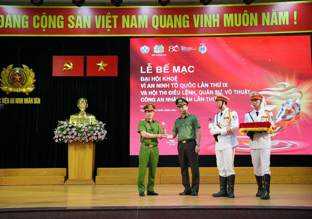 Phát biểu tại lễ bế mạc, Thiếu tướng Phạm Kim Đĩnh nhấn mạnh: “Đại hội khỏe Vì An ninh Tổ quốc và Hội thi Điều lệnh, quân sự, võ thuật Công an nhân dân năm nay đã thể hiện rõ tinh thần “Khỏe để bảo vệ Tổ quốc”. Trong suốt quá trình thi đấu, các vận động viên đã mang đến những màn tranh tài quyết liệt, trình diễn nhiều kỹ thuật đẹp mắt và giành được những thành tích đáng ghi nhận. Không ít cá nhân đã vượt qua giới hạn bản thân, lập nên kỷ lục mới, đóng góp vào thành công chung của đơn vị và khẳng định sức mạnh, ý chí của lực lượng Công an nhân dân. Các nội dung điều lệnh, quân sự, võ thuật của các đội tuyển thể hiện sự chính quy, tinh nhuệ, bản lĩnh; kỹ thuật thuần thục, thể hiện rõ nét trình độ huấn luyện, rèn luyện và khả năng sàng chiến đấu của lực lượng Công an nhân dân. Thành công của Đại hội và Hội thi lần này là nguồn động viên to lớn, tiếp thêm động lực để mỗi cán bộ, chiến sĩ không ngừng rèn luyện thể lực, nâng cao bản lĩnh, trình độ điều lệnh, quân sự, võ thuật; phát huy truyền thống anh hùng, sẵn sàng nhận và hoàn thành xuất sắc mọi nhiệm vụ được giao, góp phần giữ vững an ninh quốc gia, bảo đảm trật tự, an toàn xã hội, vì cuộc sống bình yên và hạnh phúc của Nhân dân.”