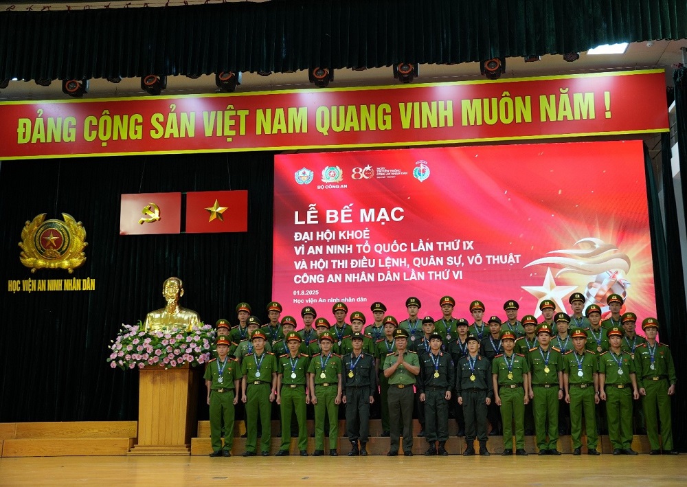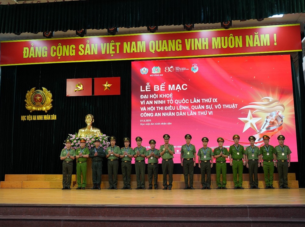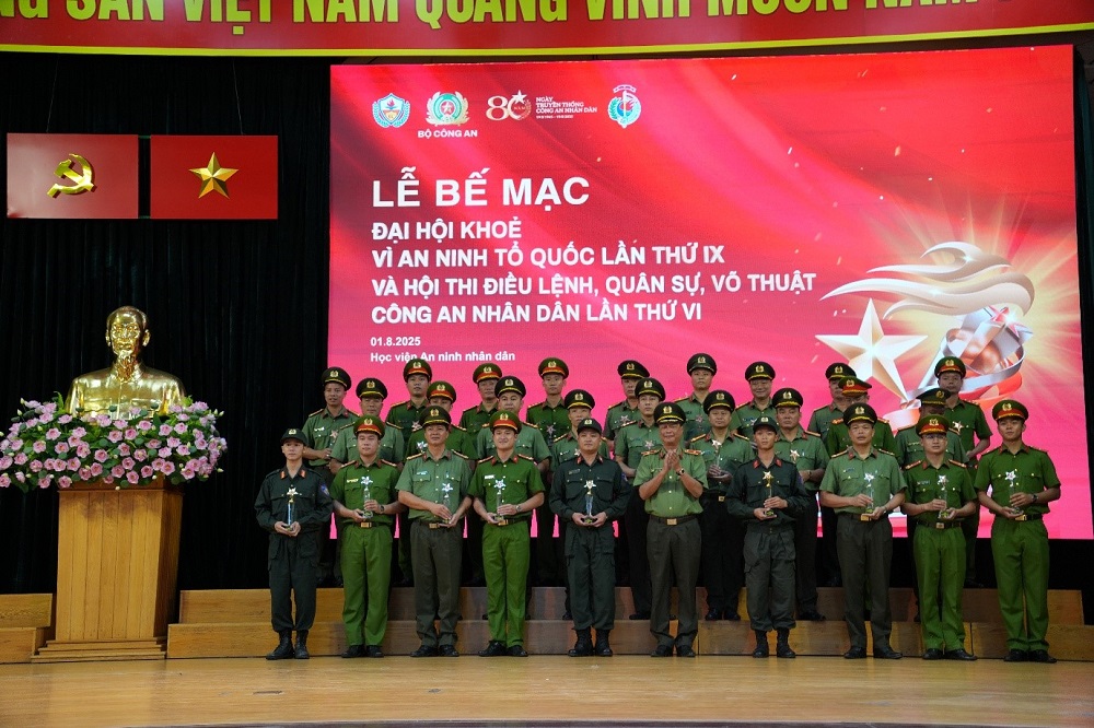 Đại hội khỏe “Vì An ninh Tổ quốc” lần thứ IX và Hội thi Điều lệnh, quân sự, võ thuật CAND lần thứ VI được tổ chức qua hai giai đoạn, diễn ra từ tháng 8/2024 đến tháng 8/2025 tại 5 địa phương. Ở giai đoạn 1, hơn 15.000 cán bộ, chiến sĩ thuộc 126 đoàn Công an các đơn vị, địa phương tranh tài ở 13 môn thi đấu với 133 nội dung. Giai đoạn 2 thu hút 70 đoàn với hơn 2.000 vận động viên tham gia Đại hội khỏe và 26 đội tuyển với hơn 2.200 cán bộ, chiến sĩ tranh tài tại Chung kết Hội thi Điều lệnh, quân sự, võ thuật. Các nội dung thi đấu gồm bóng bàn, cầu lông, cờ tướng, bóng đá nam 7 người, điều lệnh, quân sự, võ thuật CAND…