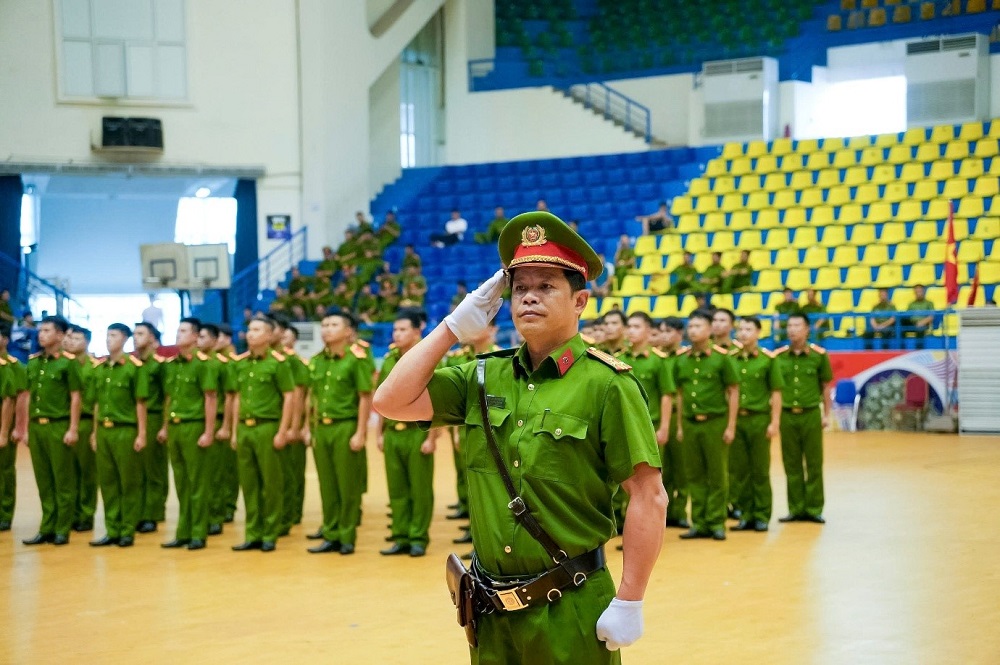 Thượng tá Phạm Lâm Hải Nguyên – Phó trưởng phòng Kỹ thuật hình sự thực hiện chỉ huy đội tuyển điều lệnh, võ thuật CAND