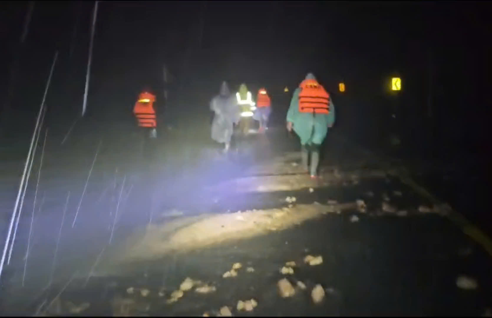 Tuy nhiên, trong quá trình tiếp cận, đường đi bị chia cắt bởi nhiều điểm sạt lở lớn; cách hiện trường khoảng 10 km, Tổ công tác phát hiện có 03 điểm sạt lở nghiêm trọng. Tại khu vực này, có 04 ô tô với tổng cộng 09 người dân bị mắc kẹt giữa các điểm sạt lở, tiềm ẩn nguy cơ tiếp tục xảy ra sạt trượt. Để bảo đảm an toàn, Tổ công tác đã tiến hành sơ tán toàn bộ 09 người đến trụ sở Công an xã để trú ẩn an toàn, đồng thời tiếp tục tiếp cận hiện trường phối hợp Công an tỉnh Khánh Hòa triển khai cứu hộ, đưa các nạn nhân ra khỏi khu vực nguy hiểm.
