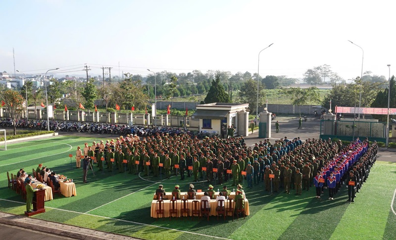Toàn cảnh Lễ ra quân thực hiện cao điểm tấn công, trấn áp tội phạm, đảm bảo ANTT tại trụ sở Công an tỉnh Lâm Đồng