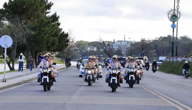 Các lực lượng ra quân diễu hành trên các tuyến đường thuộc TP. Đà Lạt (cũ)