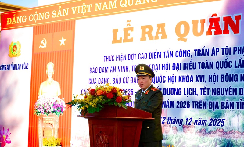 Phát biểu tại buổi lễ, đồng chí Hồ Văn Mười – Phó Bí thư Tỉnh uỷ, Chủ tịch UBND tỉnh Lâm Đồng đánh giá cao sự chủ động của lực lượng Công an tỉnh; đồng thời đề nghị Công an tỉnh tiếp tục phát huy vai trò nòng cốt trong tham mưu Tỉnh ủy, UBND tỉnh chỉ đạo toàn diện công tác bảo đảm ANTT; tham mưu huy động sức mạnh của cả hệ thống chính trị, tăng cường phối hợp giữa các lực lượng chức năng, các sở, ban, ngành và chính quyền địa phương trong phòng ngừa, đấu tranh với các loại tội phạm.