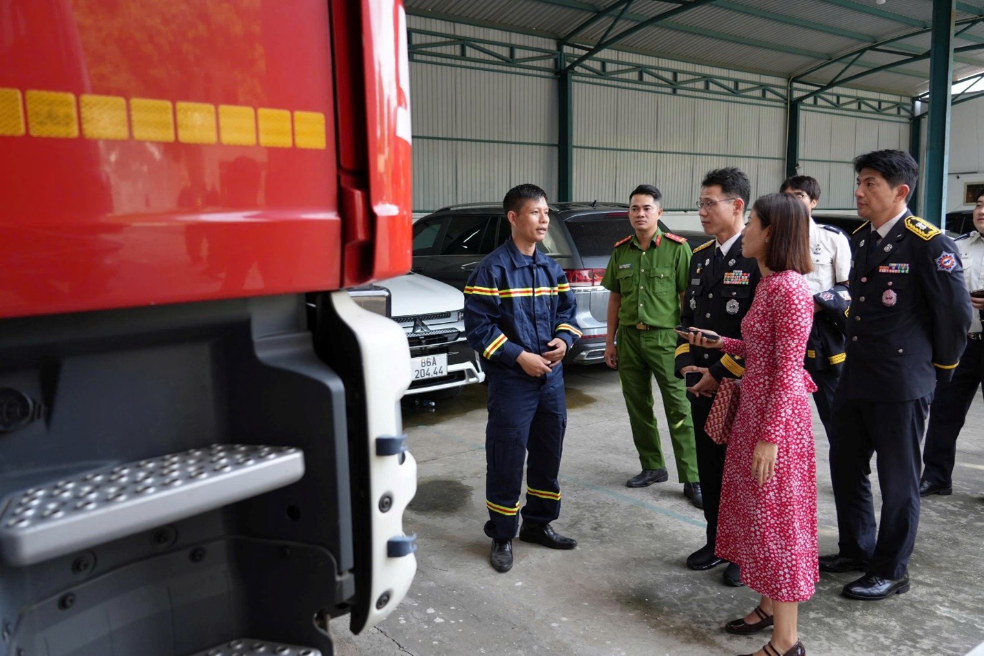 Tham quan khu vực làm việc, phương tiện, thiết bị và các xe chuyên dụng phục vụ công tác phòng cháy, chữa cháy và cứu nạn, cứu hộ của đơn vị