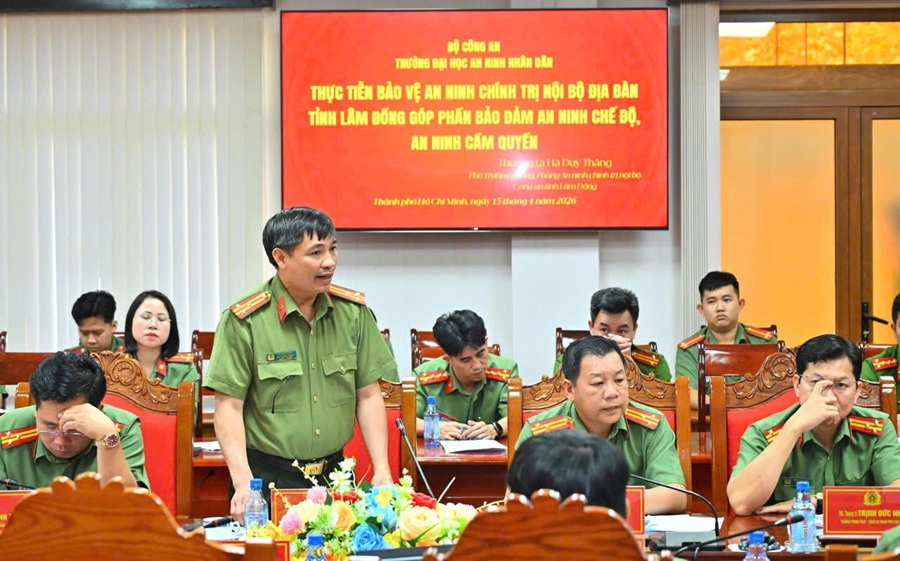 Đại diện Công an tỉnh Lâm Đồng tại Hội nghị, Đồng chí Thượng tá Hà Duy Thắng - Phó Trưởng Phòng an ninh chính trị nội bộ đã đánh giá toàn diện tình hình thực tiễn, nhận diện các nguy cơ, thách thức đe dọa an ninh chế độ, an ninh cầm quyền cũng như dự báo các khả năng, tình huống có thể xảy ra, xác định một số nhiệm vụ, giải pháp bảo đảm an ninh chế độ, an ninh cầm quyền trong giai đoạn hiện nay trên địa bàn tỉnh Lâm Đồng. Hội thảo về công tác đảm bảo an ninh chế độ, an ninh cầm quyền có ý nghĩa rất quan trọng đối với lực lượng Công an tỉnh Lâm Đồng, giúp thống nhất về nhận thức, đánh giá đúng tình hình, nhận diện sớm các nguy cơ ảnh hưởng đến ANCT và TTATXH. Qua đó, giúp chủ động phòng ngừa “từ sớm, từ xa”, không để bị động, bất ngờ. Hội thảo còn góp phần nâng cao bản lĩnh chính trị, tinh thần trách nhiệm và năng lực tham mưu của cán bộ, chiến sỹ. Từ đó, xây dựng lực lượng Công an ngày càng chính quy, tinh nhuệ, hiện đại, đáp ứng yêu cầu bảo vệ an ninh quốc gia trong tình hình mới.