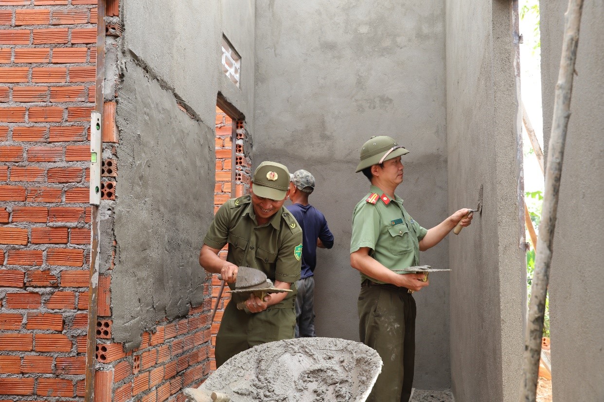 Lực lượng Công an cấp xã trên địa bàn tỉnh Lâm Đồng tham gia thực hiện chương trình xóa nhà tạm, nhà dột nát