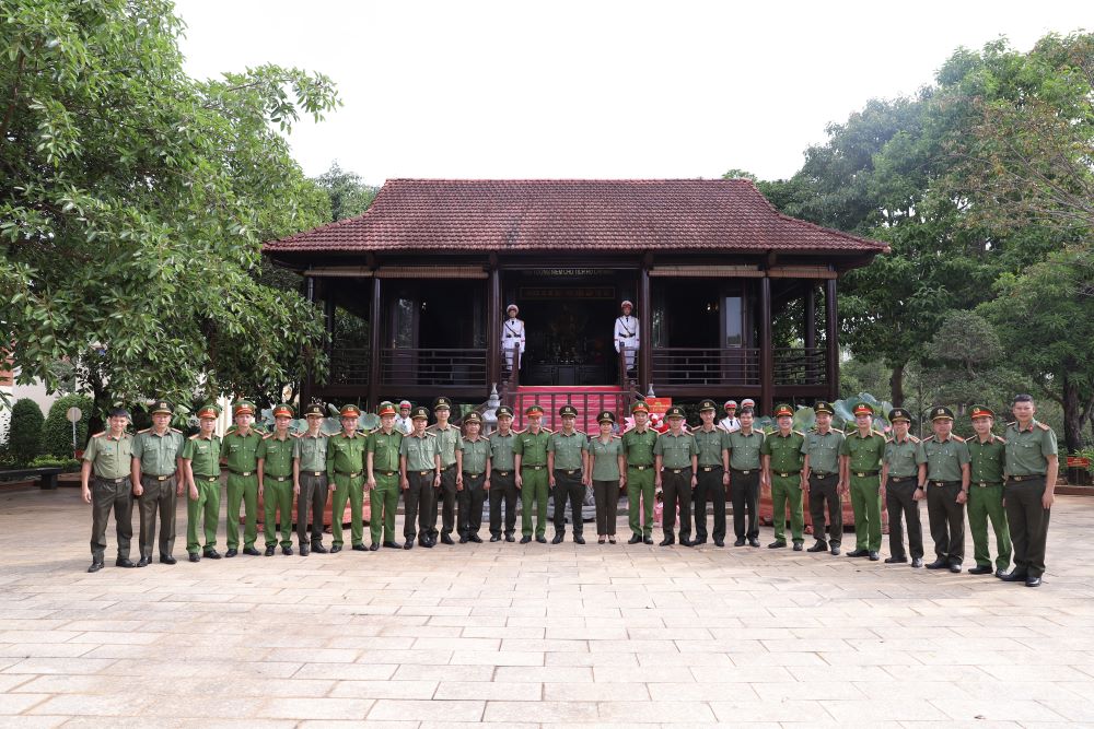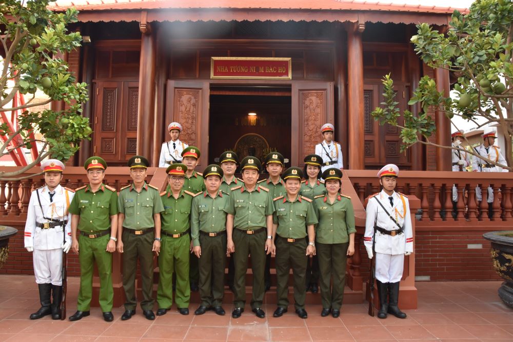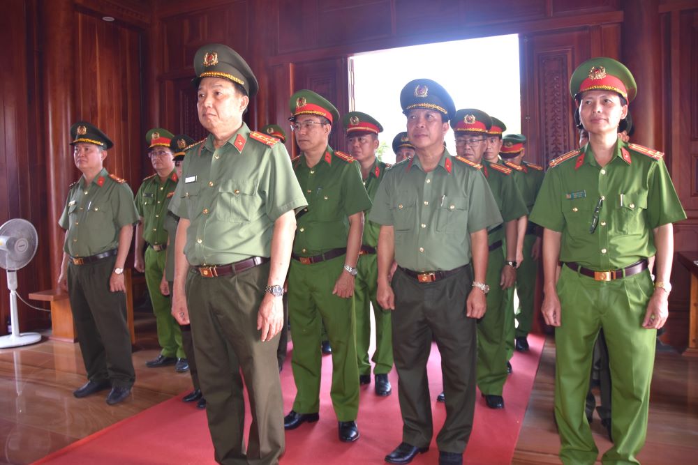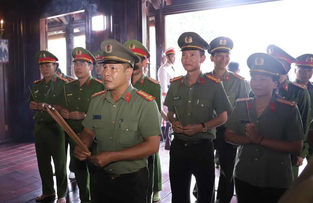 Đoàn đại biểu dâng hương tại Nhà tưởng niệm Bác (số 117, Tôn Đức Thắng, phường Phú Thủy) do đồng chí Đại tá Trần Văn Mười, Phó Giám đốc Công an tỉnh làm trưởng đoàn