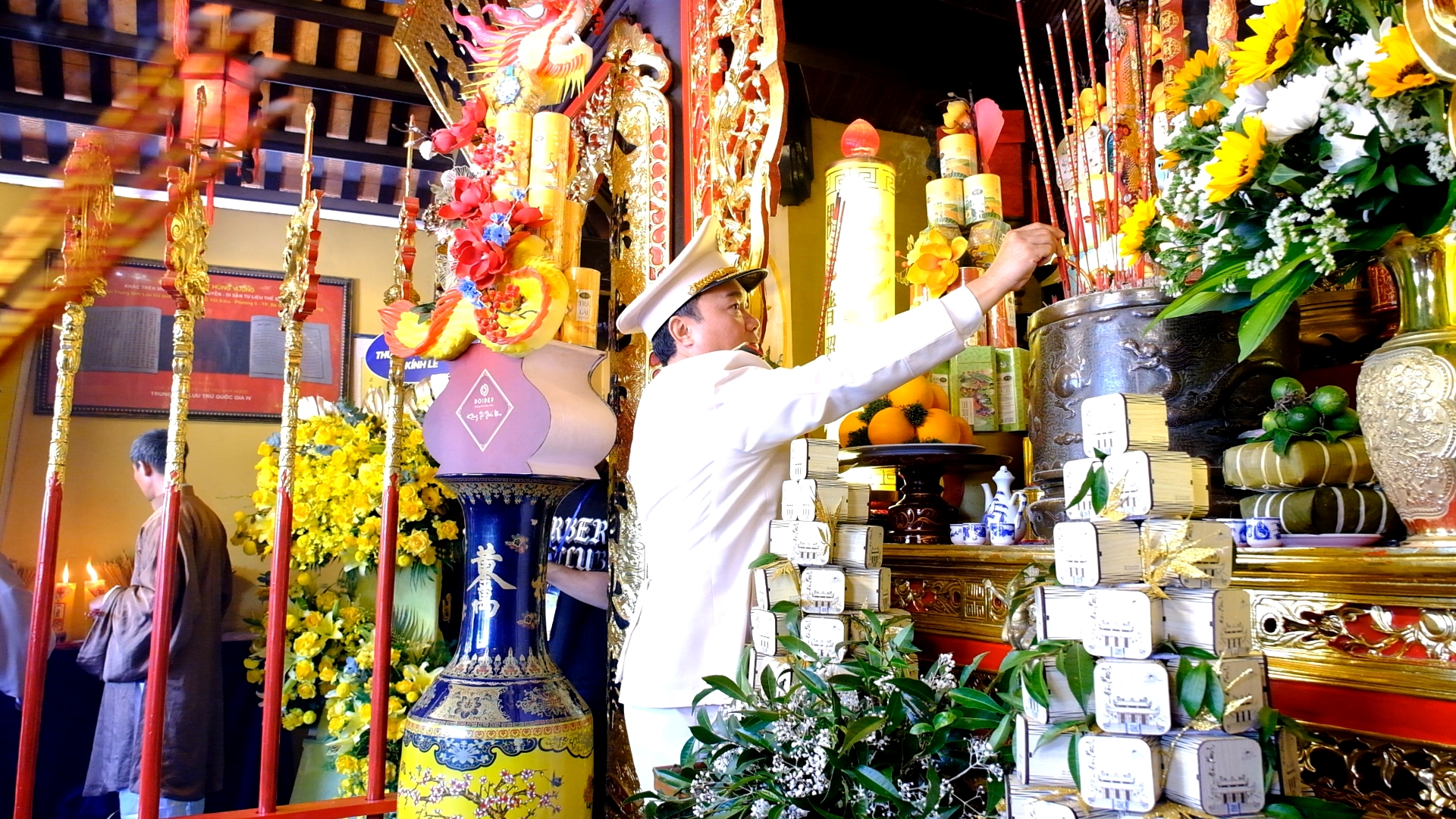 Thiếu tướng Trương Minh Đương, Giám đốc Công an tỉnh Lâm Đồng thành kính dâng hương, dâng hoa và lễ vật lên bàn thờ Quốc Tổ.
