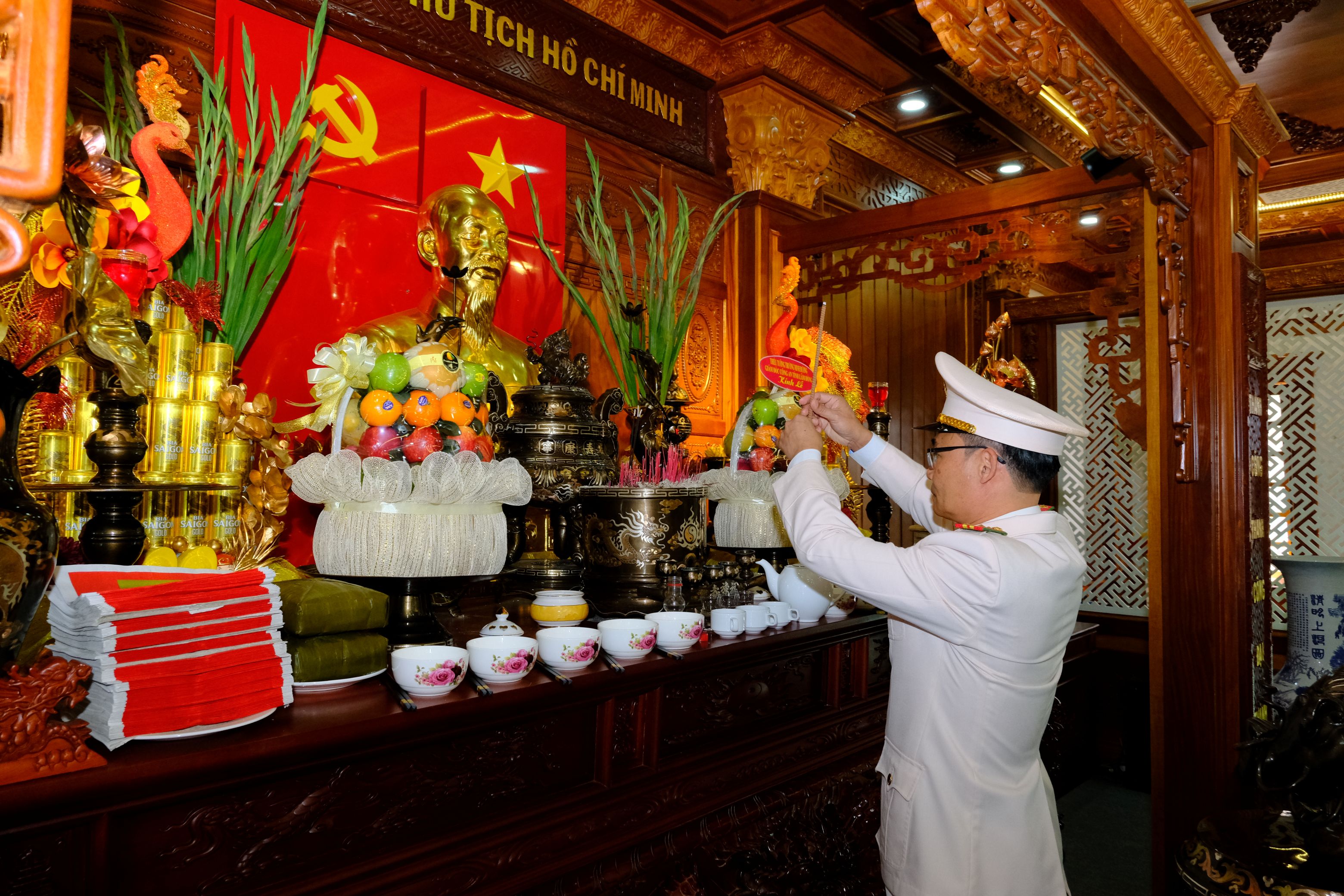 Cùng ngày, tại Nhà tưởng niệm Chủ tịch Hồ Chí Minh trong khuôn viên Công an tỉnh Lâm Đồng, Đảng ủy, Ban Giám đốc cùng đại diện lãnh đạo các đơn vị nghiệp vụ trong Công an tỉnh Lâm Đồng đã trang trọng tổ chức Lễ dâng hương, dâng hoa tưởng nhớ, tri ân công đức các Vua Hùng, Chủ tịch Hồ Chí Minh và các Anh hùng liệt sĩ.