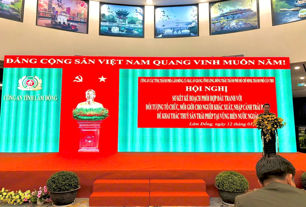 Phát biểu tại hội nghị, đồng chí Lê Trọng Yên, Phó Chủ tịch UBND tỉnh Lâm Đồng đề nghị Công an các tỉnh, thành phố tiếp tục thực hiện hiệu quả Chỉ thị số 32 của Ban Bí thư về tăng cường sự lãnh đạo của Đảng đối với công tác chống khai thác IUU và phát triển bền vững ngành thủy sản; phối hợp chặt chẽ với Bộ đội Biên phòng, Sở NN&MT các tỉnh, thành trong phát hiện, đấu tranh, xử lý các đối tượng tổ chức, môi giới cho người khác xuất, nhập cảnh trái phép để khai thác thủy sản trái phép tại vùng biển nước ngoài; xác nhận nguồn gốc thủy sản khai thác, quản lý đội tàu khai thác hải sản trên biển, thực hiện tốt các chính sách hỗ trợ ngư dân và các chương trình, đề án quy hoạch phát triển nguồn lợi thủy sản tại các địa phương.