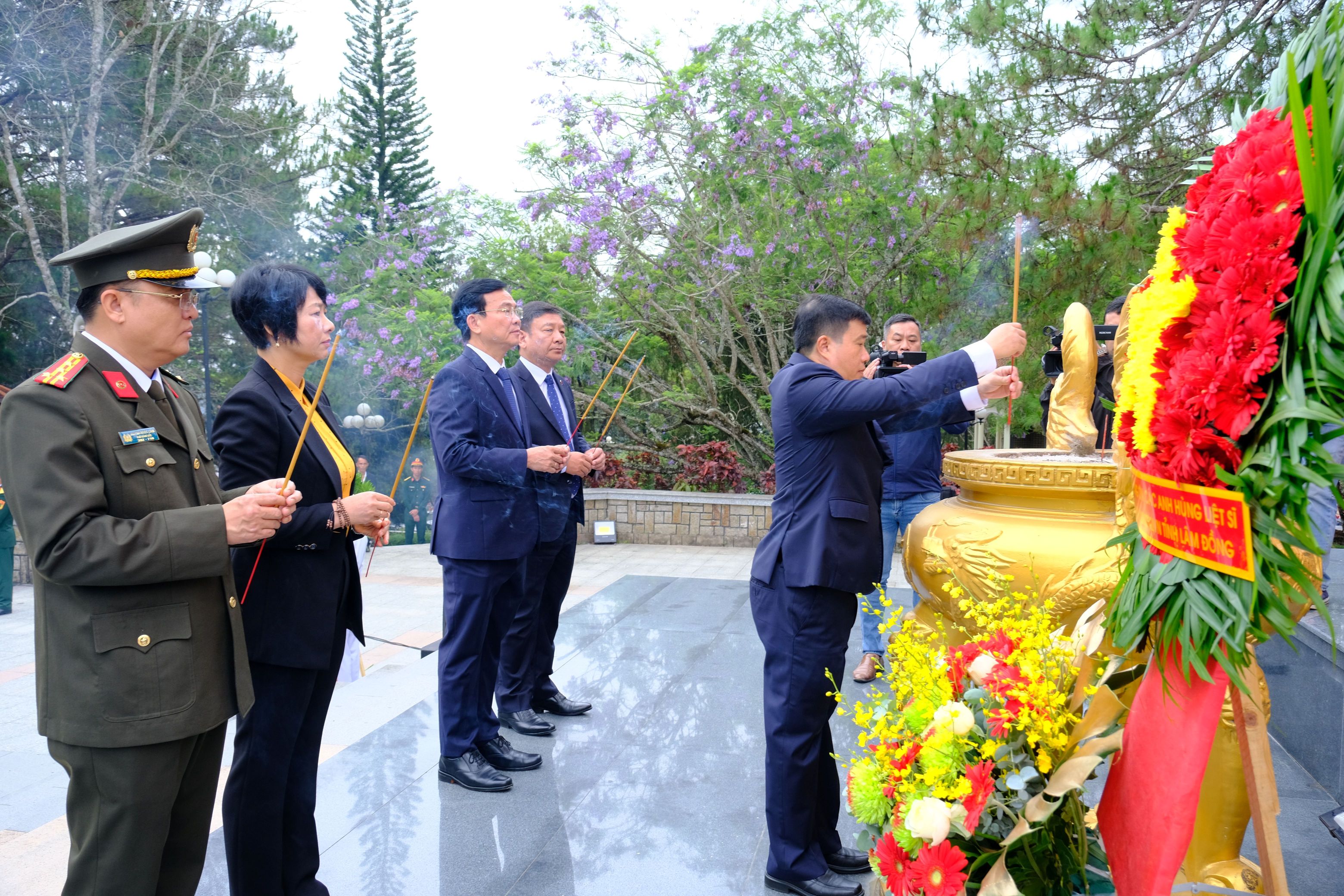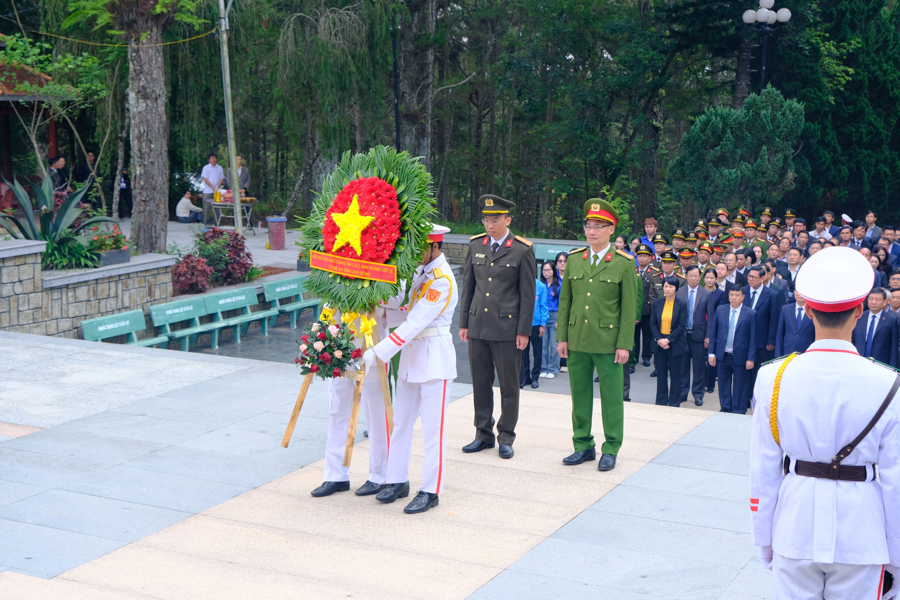 Trong không khí thiêng liêng và trang nghiêm, với lòng thành kính và biết ơn vô hạn, đoàn đại biểu Công an tỉnh Lâm Đồng đã cùng các đồng chí lãnh đạo Tỉnh ủy, HĐND, UBND, Ủy ban MTTQ Việt Nam tỉnh đặt vòng hoa, dâng hương lên Đài tưởng niệm các Anh hùng, liệt sỹ bày tỏ lòng thành kính và biết ơn vô hạn đối với những người con ưu tú của dân tộc đã không tiếc máu xương, anh dũng chiến đấu và hy sinh vì sự nghiệp đấu tranh giải phóng dân tộc, thống nhất đất nước.