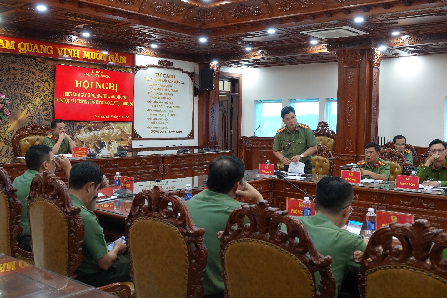 Phát biểu kết luận, Đại tá Huỳnh Ngọc Liêm nhấn mạnh: “Đây là chủ trương có ý nghĩa nhân văn sâu sắc, thể hiện tình cảm, trách nhiệm của lực lượng Công an đối với đồng bào dân tộc thiểu số, hộ nghèo, gia đình chính sách và cả những người hoàn lương. Đề nghị các đơn vị, Công an cơ sở triển khai khẩn trương, nghiêm túc, công khai, minh bạch, bảo đảm đúng đối tượng thụ hưởng, tuyệt đối không để xảy ra sai sót, tiêu cực. Đồng thời, cần phát huy sức mạnh tổng hợp của các tổ chức, đoàn thể và nhân dân địa phương để hoàn thành đúng tiến độ, mang lại mái ấm bền vững cho người dân khó khăn, giúp họ ổn định cuộc sống, vươn lên phát triển kinh tế.”