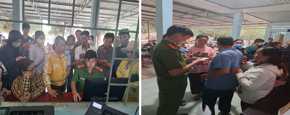 Cán bộ, chiến sĩ Công an xã hỗ trợ người dân làm định danh điện tử