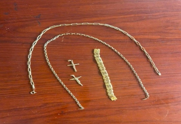 Công an xã Bắc Ruộng đã thu giữ 02 sợi dây chuyền vàng 18K (9,5 chỉ) và 01 lắc tay vàng 18K (2,5 chỉ) có đặc điểm trùng khớp với tài sản bà Bé bị mất.