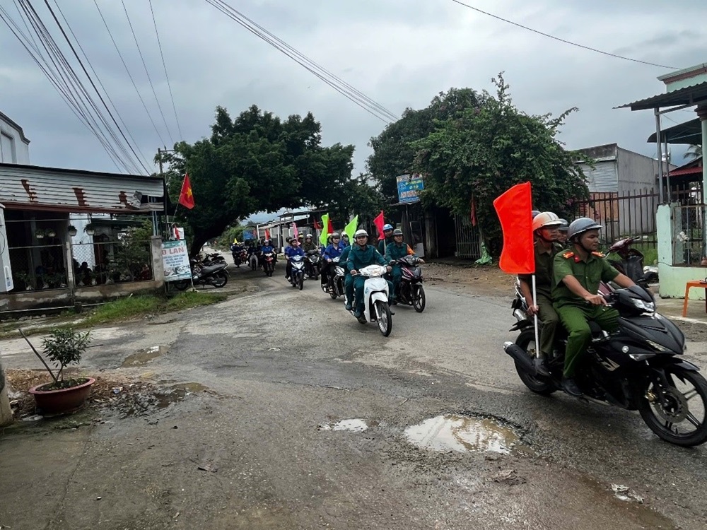 Công an xã phối hợp với các lực lượng chức năng cùng Đoàn Thánh niên xã thực hiện tuyên truyền đóng góp tích cực cho cộng đồng
