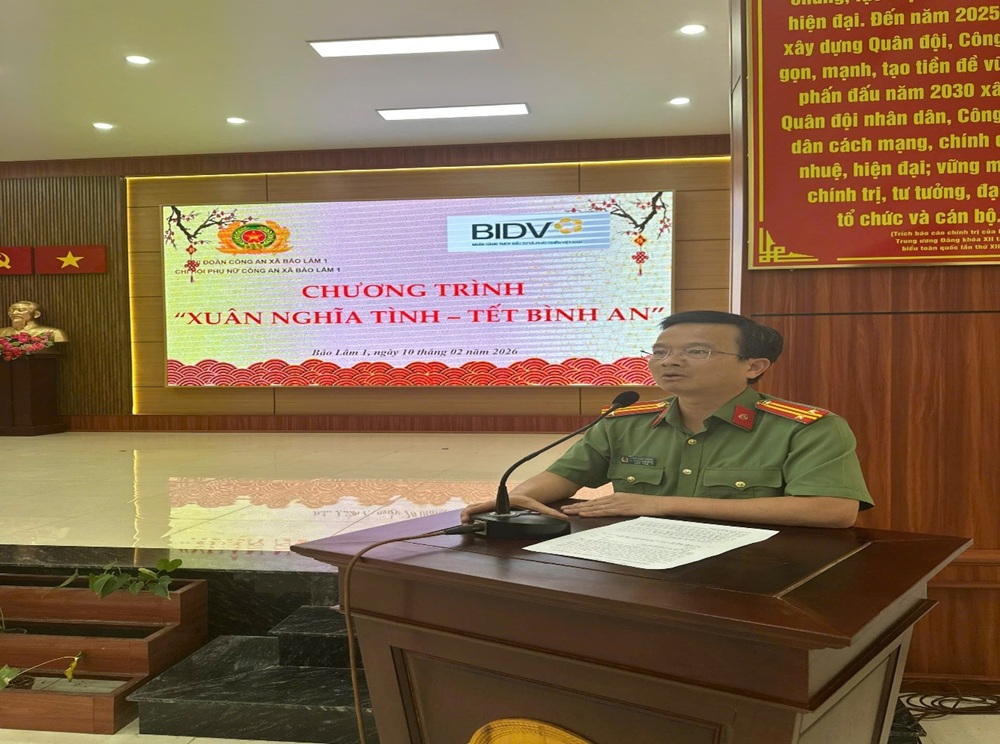 Thiết thực chào mừng 96 năm Ngày thành lập Đảng Cộng sản Việt Nam (03/02/1930 – 03/02/2026), chào mừng thành công Đại hội đại biểu toàn quốc lần thứ XIV của Đảng và mừng Xuân Bính Ngọ năm 2026, ngày 10/02/2026, Chi đoàn thanh niên, Chi hội phụ nữ Công an xã Bảo Lâm 1 đã phối hợp với Ngân hàng BIDV Chi nhánh Bảo Lộc – Phòng giao dịch Bảo Lâm tổ chức chương trình trao quà “Xuân Nghĩa Tình – Tết Bình An”.