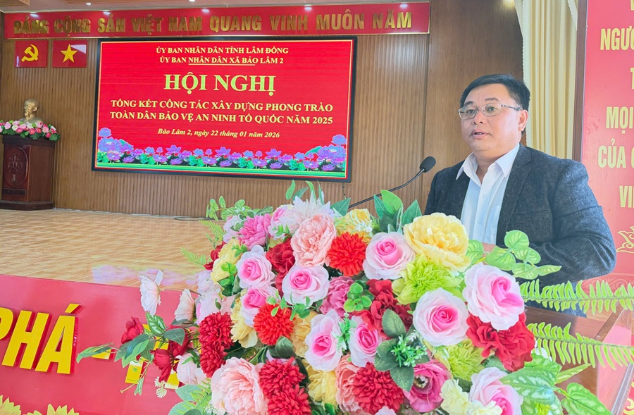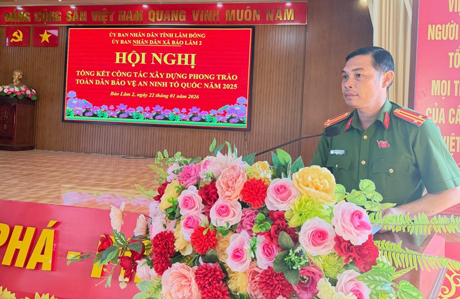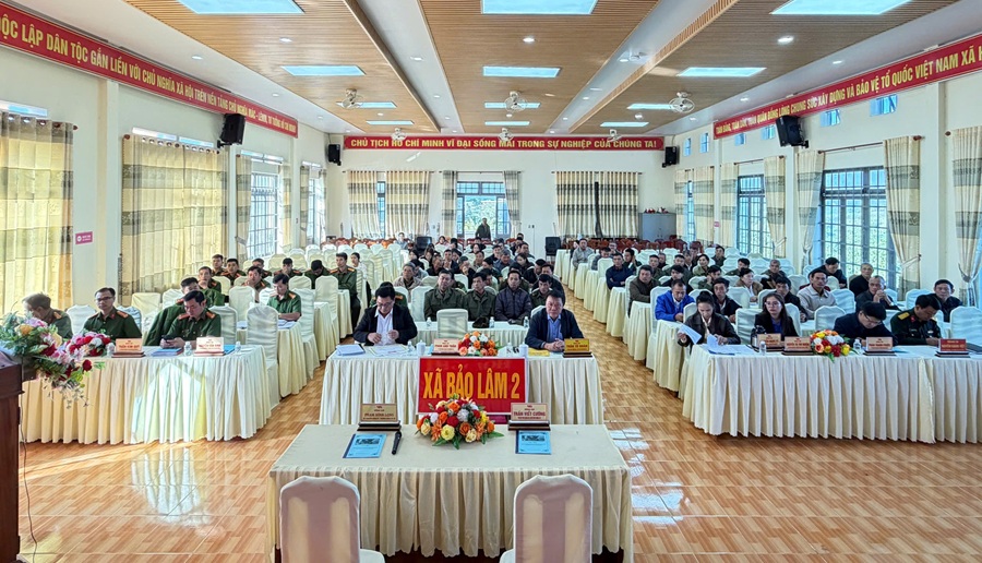 Tham dự và chỉ đạo Hội nghị có đồng chí Trần Viết Cường – Chủ tịch UBND xã Bảo Lâm 2; đồng chí Trần Tô Nhân – Chủ tịch Ủy ban MTTQ Việt Nam xã Bảo Lâm 2; đồng chí Trung tá Phạm Đình Long – Trưởng Công an xã Bảo Lâm 2. Cùng dự có đại diện lãnh đạo các phòng, ban, đơn vị trực thuộc UBND xã; Ban Chỉ huy Quân sự xã; Ban Chỉ huy và cán bộ, chiến sĩ Công an xã; Bí thư Chi bộ, Trưởng thôn, đại diện Ban Công tác Mặt trận 31 thôn; Tổ trưởng Tổ an ninh, trật tự cơ sở 31 thôn; đại diện các cơ quan, doanh nghiệp trên địa bàn và các tập thể, cá nhân được khen thưởng có thành tích xuất sắc trong phong trào toàn dân bảo vệ an ninh Tổ quốc năm 2025.