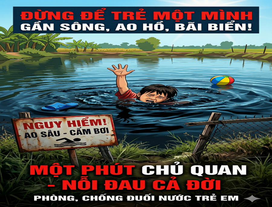 Không để trẻ em tự ý đi tắm ao, hồ, sông, suối một mình