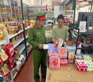 Công an xã Bảo Lâm 3 kiểm tra, hướng dẫn các cơ sở kinh doanh chấp hành các quy định của pháp luật.