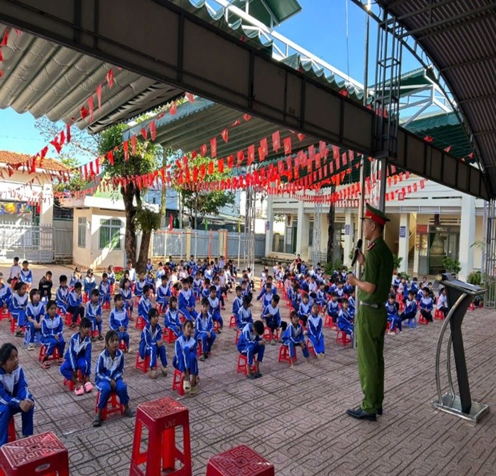 Trong đó, lực lượng Công an xã đặc biệt chú trọng công tác tuyên truyền, phổ biến pháp luật cho học sinh tại các trường học trên địa bàn. Nội dung tuyên truyền tập trung vào các quy định của pháp luật về trật tự an toàn giao thông đường bộ; hướng dẫn học sinh chấp hành các quy tắc khi tham gia giao thông như đội mũ bảo hiểm, đi đúng phần đường, làn đường, tuân thủ tín hiệu đèn giao thông và kỹ năng sang đường an toàn.