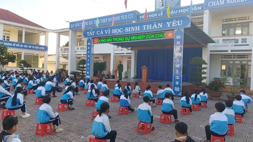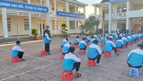 Đại diện Công an xã trao đổi một số nội dung có liên quan với học sinh nhà trường.