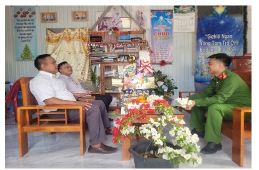 Tại các giáo xứ, chi hội, Công an xã đã gửi lời chúc mừng tốt đẹp đến các vị chức sắc, chức việc cùng toàn thể bà con giáo dân, tín đồ đón một mùa Lễ Phục sinh an lành, hạnh phúc, tràn đầy niềm tin và hy vọng. Đồng thời ghi nhận, đánh giá cao những đóng góp tích cực của các chức sắc, chức việc và bà con giáo dân, tín đồ trong thực hiện các phong trào thi đua yêu nước, phát triển kinh tế - xã hội, giữ gìn an ninh, trật tự tại địa phương. Đoàn công tác bày tỏ mong muốn thời gian tới các vị chức sắc, chức việc tiếp tục phát huy vai trò, uy tín, vận động bà con giáo dân, tín đồ sống “tốt đời, đẹp đạo”, chấp hành tốt chủ trương, đường lối của Đảng, chính sách, pháp luật của Nhà nước; Tích cực tham gia xây dựng khối đại đoàn kết toàn dân tộc.