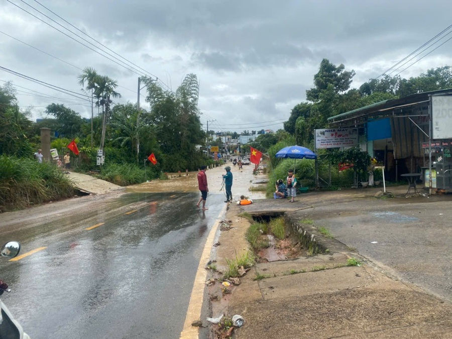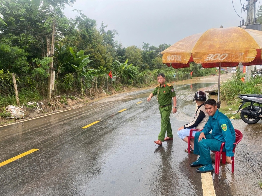 Tại khu vực Cống Ngầm, thôn 6, xã Bảo Lâm 3, khi mưa lớn, lưu lượng nước đổ về tăng đột biến dẫn đến nguy cơ ngập úng, mất an toàn. Nhận thấy tình hình thời tiết diễn biến phức tạp, Công an xã Bảo Lâm 3 đã phối hợp với Ban Chỉ huy Quân sự xã phân công lực lượng, huy động vật tư, cắm biển cảnh báo, lập chốt kiểm soát để điều tiết giao thông, hướng dẫn người dân lưu thông an toàn.
