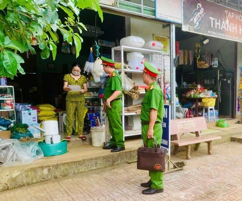 Công an xã Bảo Lâm 4 vận động hộ kinh doanh không lấn chiếm lòng lề đường