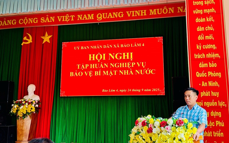 Thời gian tới, Công an xã Bảo Lâm 4 sẽ tiếp tục phát huy vai trò nòng cốt trong công tác bảo vệ bí mật nhà nước, chủ động tham mưu Đảng ủy, HĐND, UBND xã triển khai các giải pháp đồng bộ, trọng tâm. Trong đó, chú trọng phối hợp các ngành, đơn vị địa phương hướng dẫn, trao đổi về bảo vệ bí mật nhà nước gắn với bảo đảm an ninh, an toàn thông tin, an ninh mạng cho đội ngũ cán bộ, công chức, viên chức, đặc biệt tại các vị trí, bộ phận trọng yếu, cơ mật.
