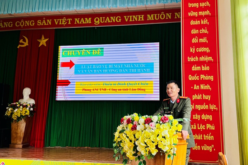 Báo cáo viên Phòng An ninh chính trị nội bộ Công an tỉnh Lâm Đồng phổ biến các quy định bảo vệ bí mật nhà nước