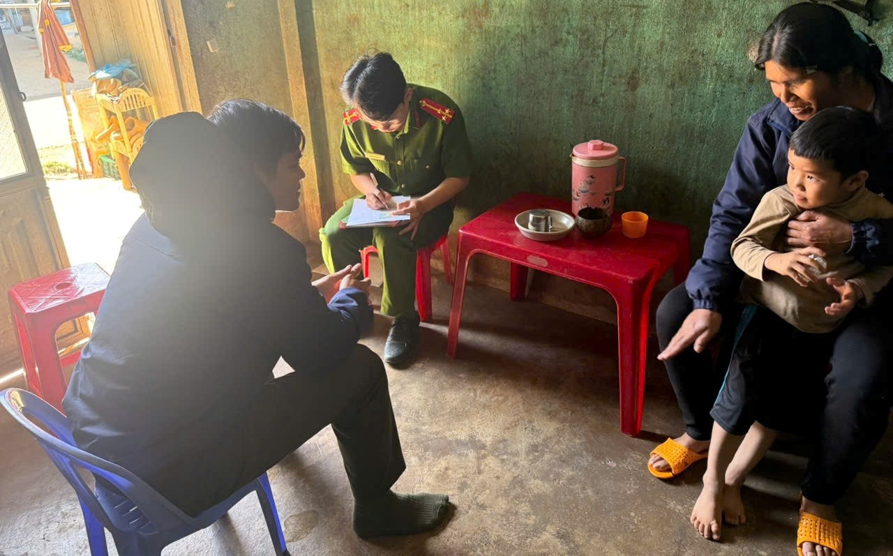 Công an xã tiến hành vận động tại các hộ gia đình