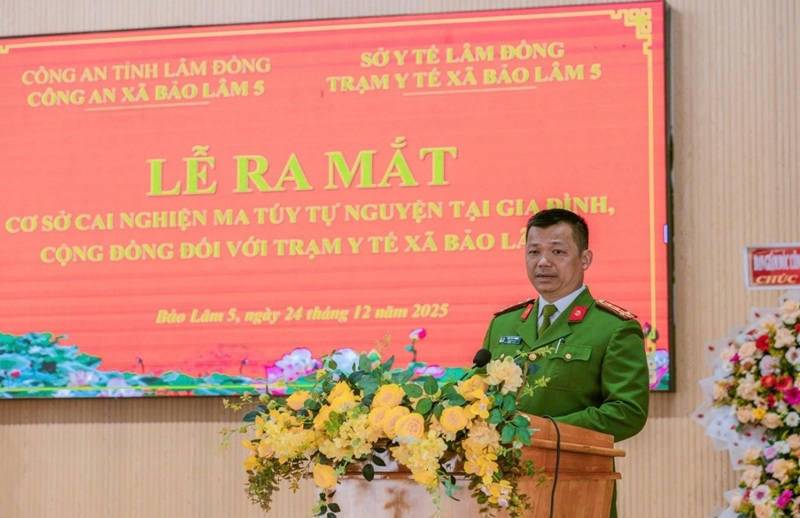 Sáng ngày 24/12/2025, Công an xã Bảo Lâm 5 phối hợp với Trạm Y tế xã Bảo Lâm 5 long trọng tổ chức Lễ công bố và ra mắt cơ sở đủ điều kiện cung cấp dịch vụ cai nghiện ma túy tự nguyện tại gia đình, cộng đồng đặt tại Trạm Y tế xã.