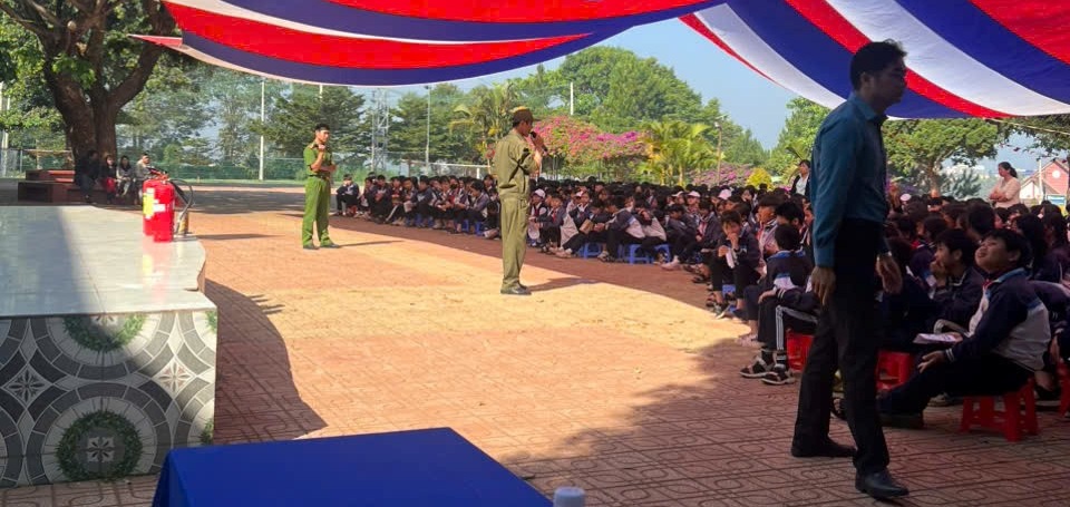 Song song với nội dung phòng, chống đuối nước, lực lượng Công an xã cũng chú trọng tuyên truyền về công tác phòng cháy, chữa cháy và cứu nạn, cứu hộ. Thông qua hình thức trình bày trực quan, sinh động, học sinh được hướng dẫn cách nhận biết nguy cơ cháy, nổ trong sinh hoạt hằng ngày, kỹ năng thoát hiểm khi xảy ra cháy, cũng như cách sử dụng một số phương tiện chữa cháy ban đầu.