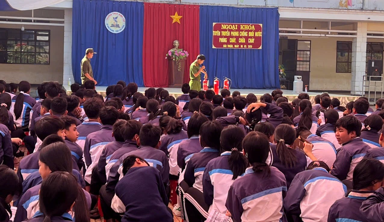Thời gian qua, Công an xã Bảo Thuận đã chủ động triển khai nhiều hoạt động thiết thực nhằm nâng cao nhận thức, kỹ năng phòng ngừa tai nạn, thương tích cho học sinh trên địa bàn. Nổi bật là việc tổ chức 02 buổi tuyên truyền chuyên đề về phòng, chống đuối nước và kỹ năng thoát nạn, phòng cháy, chữa cháy (PCCC) cho hơn 1.500 học sinh, giáo viên tại Trường THCS Đinh Lạc và Trường THCS Bảo Thuận.