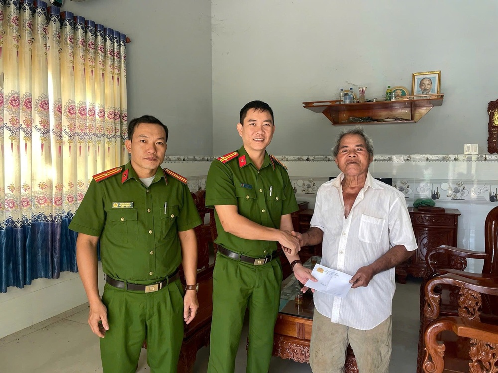 Công an xã thăm hỏi, tặng quà cho già làng tại Thôn 3, xã Cát Tiên 2