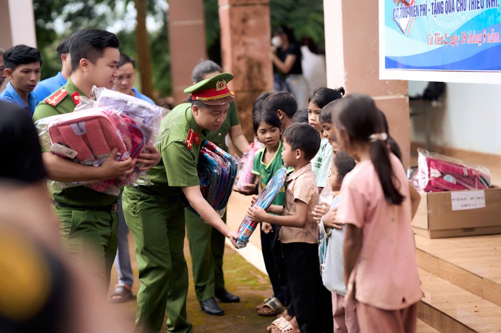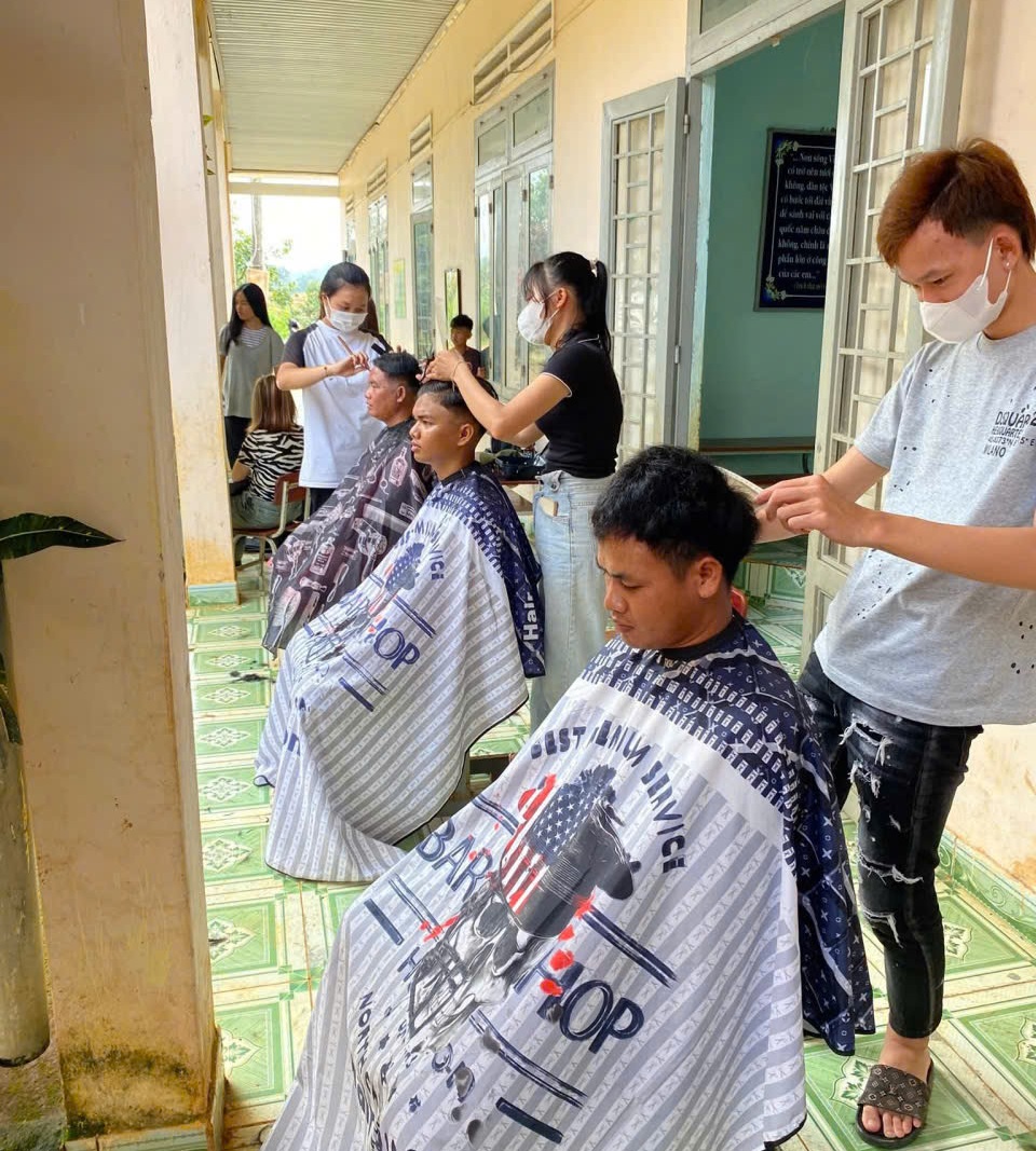 Bên cạnh đó, Câu lạc bộ “Những cây kéo tình nguyện” đã tổ chức cắt tóc miễn phí cho người dân địa phương, đặc biệt là các em học sinh, nhằm giúp các em có diện mạo gọn gàng, tự tin hơn khi bước vào năm học mới. Các trò chơi dân gian cũng được tổ chức, tạo không khí vui tươi, gần gũi và nhận được sự hưởng ứng tích cực từ các em nhỏ.