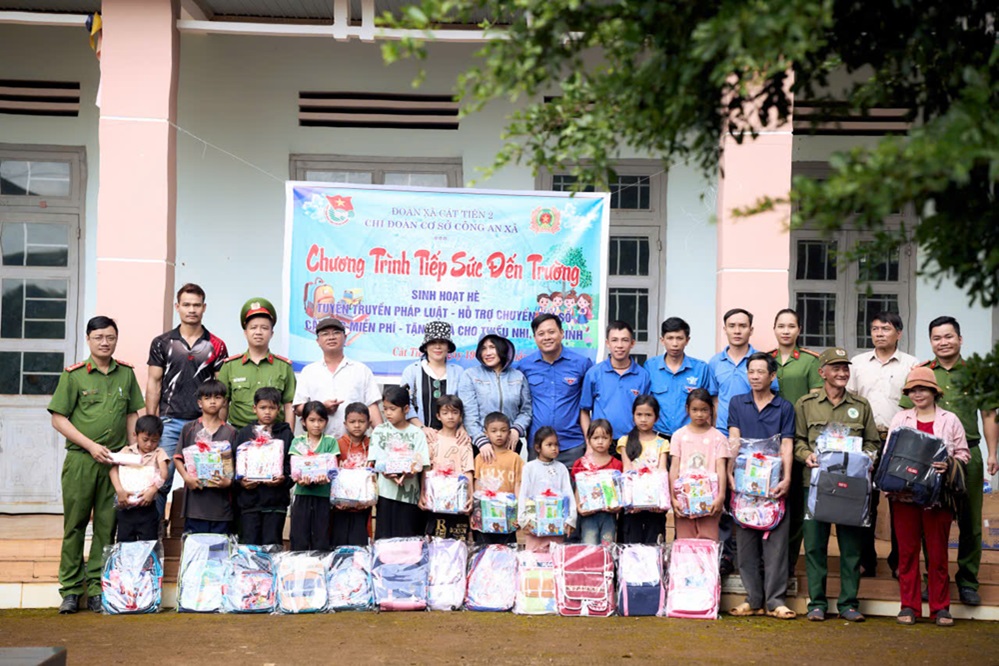 Tại buổi giao lưu, đoàn đã trao tặng hơn 100 suất quà đến các hộ dân có hoàn cảnh khó khăn trên địa bàn thôn 3, thôn 4. Đồng thời, tặng 47 phần quà học tập (gồm cặp sách, vở, bút, bình nước và các dụng cụ học tập) cho các em học sinh nghèo vượt khó. Tổng trị giá các phần quà hơn 41 triệu đồng.