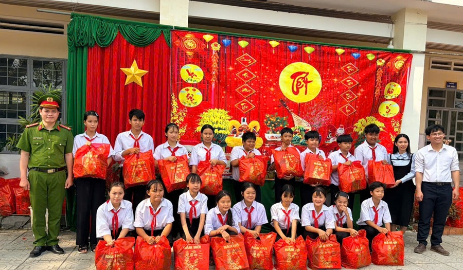 Tin tức - Sự kiệnCác hoạt động an sinh xã hội Công an xã Cát Tiên 2 trao quà Tết cho học sinh có hoàn cảnh khó khăn Your browser does not support the audio element.   13/02/2026 14:32 |   27 |  Hòa chung không khí mừng Đảng, mừng xuân Bính Ngọ 2026, nhằm phát huy tinh thần xung kích, tình nguyện và chăm lo Tết cho học sinh khó khăn, ngày 05/02/2026, Chi đoàn Công an xã Cát Tiên 2 phối hợp với Trường THCS Phước Cát 2 tổ chức chương trình trao quà Tết với chủ đề “Tết yêu thương – Mừng Đảng, mừng xuân Bính Ngọ năm 2026”. Tại chương trình, Chi đoàn đã trao 10 phần quà Tết trị giá 03 triệu đồng cho các em học sinh có hoàn cảnh đặc biệt khó khăn, biết vươn lên trong học tập. Những phần quà tuy không lớn về vật chất nhưng mang ý nghĩa tinh thần thiết thực, giúp các em đón Tết vui tươi, đầm ấm và thêm động lực phấn đấu trong năm học 2025–2026. Chương trình “Tết yêu thương – Mừng Đảng, mừng xuân Bính Ngọ năm 2026” Hoạt động đã góp phần lan tỏa tinh thần trách nhiệm, sự sẻ chia của đoàn viên thanh niên Công an với cộng đồng; đồng thời, phát huy mối quan hệ phối hợp giữa lực lượng Công an xã và nhà trường trong công tác an sinh xã hội, từ thiện tình nguyện tại địa phương. Chương trình “Tết yêu thương – Mừng Đảng, mừng xuân Bính Ngọ năm 2026” không chỉ là hoạt động chăm lo cho các em học sinh mà còn là dịp để tuổi trẻ Công an xã Cát Tiên 2 thể hiện bản lĩnh chính trị, tinh thần nhân ái và hình ảnh đẹp của người chiến sĩ Công an nhân dân trong lòng Nhân dân. Công an xã Cát Tiên 2 Từ khóa Liên kết Công an xã Cát Tiên 2