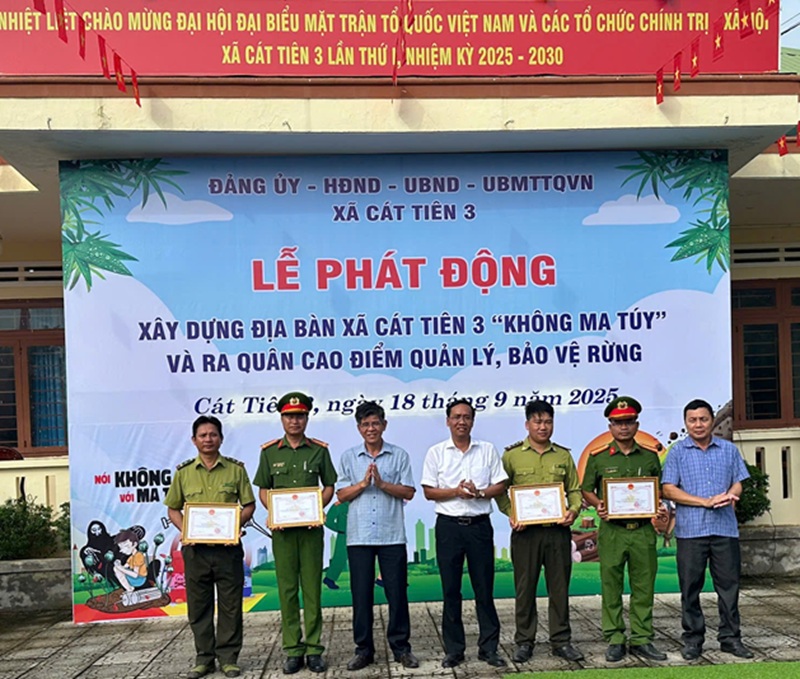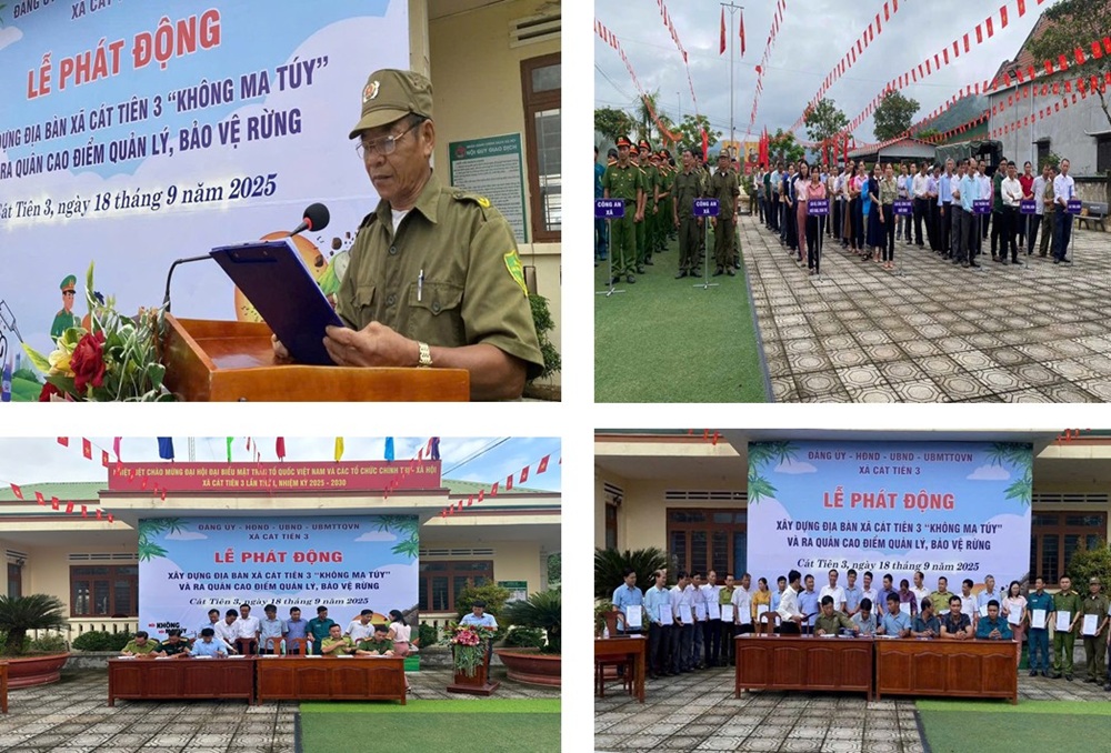 Phát biểu tại buổi lễ, đồng chí Trần Quang Trừng – Chủ tịch UBND xã nhấn mạnh: Công tác phòng, chống ma túy là nhiệm vụ chính trị quan trọng, cần có sự vào cuộc quyết liệt, đồng bộ của cả hệ thống chính trị và sự đồng thuận của toàn dân. Đồng chí đã quán triệt các nhiệm vụ, giải pháp trọng tâm nhằm từng bước xây dựng xã Cát Tiên 3 đạt chuẩn “Không ma túy” trong năm 2025.