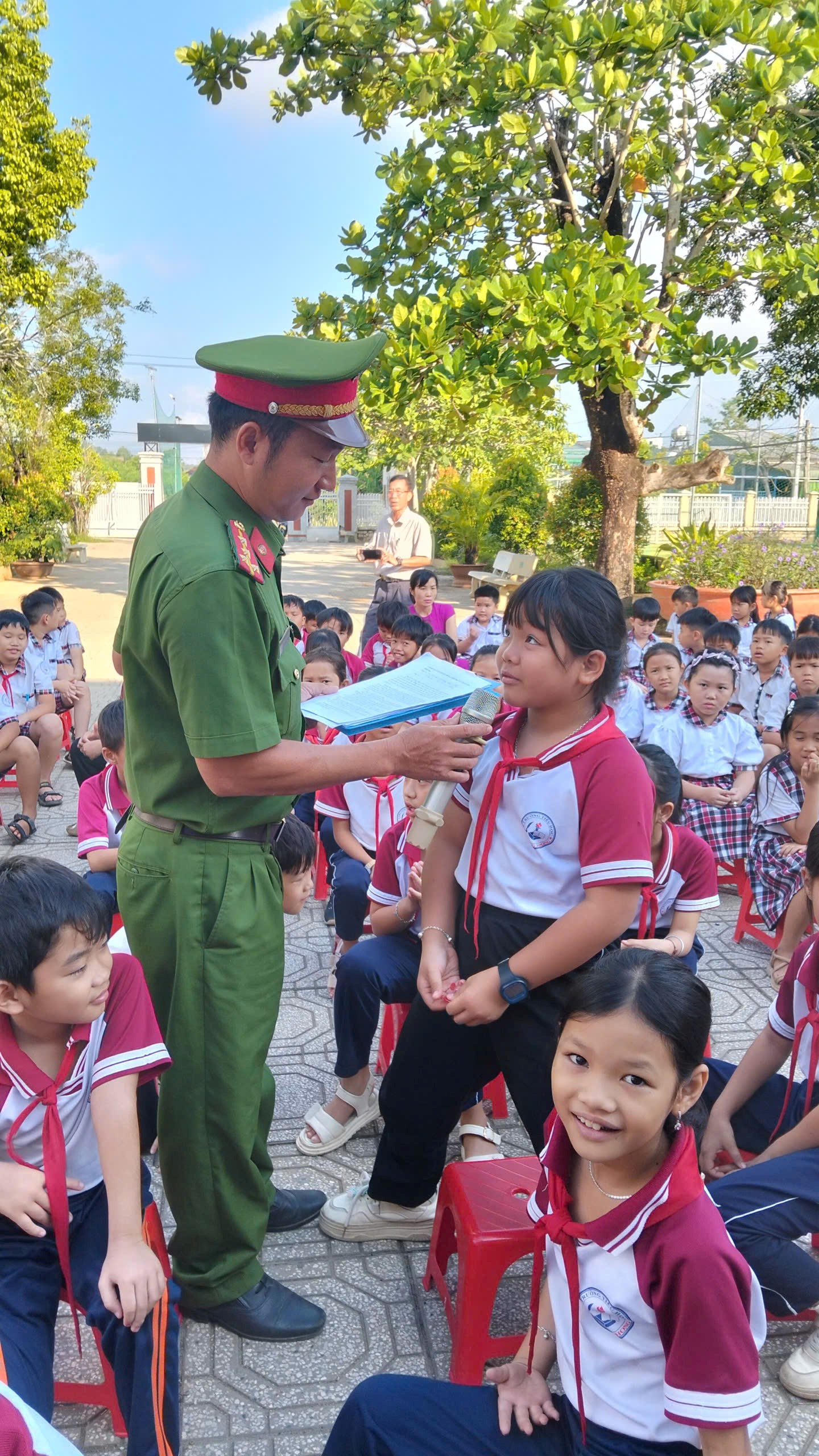 Cán bộ Công an xã giải đáp, giao lưu với học sinh