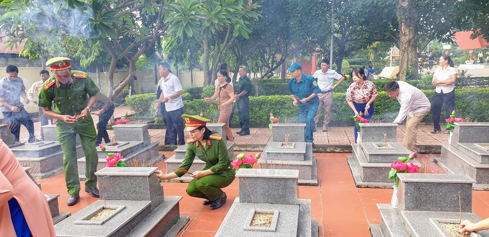 Cán bộ chiến sĩ Công an xã Cư Jút thắp hương tại các phần mộ anh hùng liệt sĩ