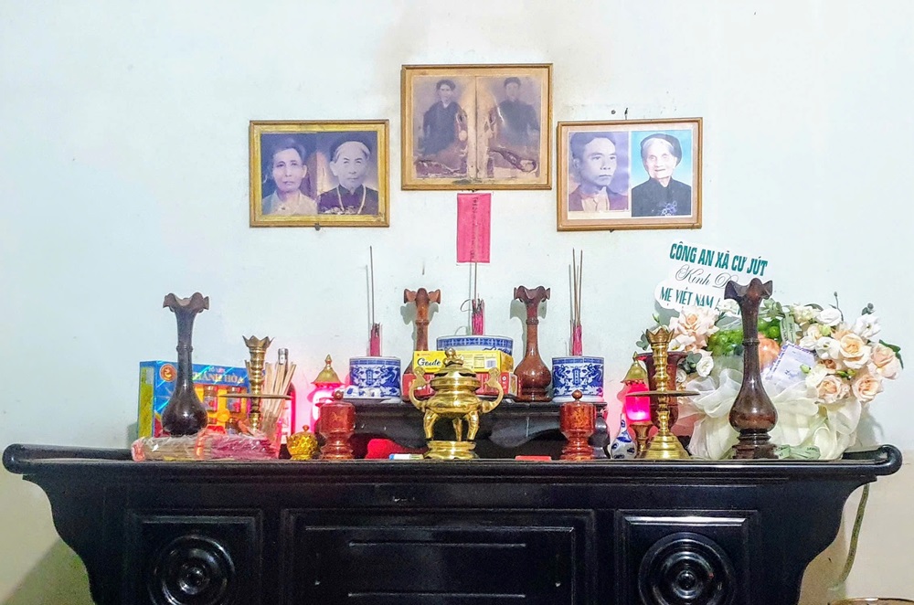 Cán bộ chiến sĩ Công an xã Cư Jút thắp hương Cho mẹ Việt Nam anh hùng Trần Thị Hồi