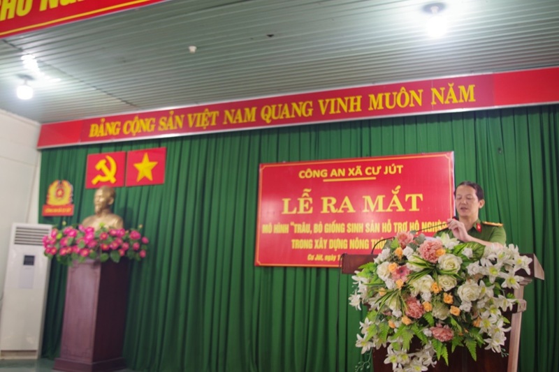 Tại buổi lễ, Công an xã Cư Jút đã trao tặng 05 con bò giống sinh sản cho 05 hộ có hoàn cảnh khó khăn là đồng bào dân tộc thiểu số, với tổng trị giá 60 triệu đồng. Nguồn kinh phí được trích từ sự đóng góp của tập thể cán bộ, chiến sĩ Công an xã và nguồn hỗ trợ xã hội hóa. Đây là hoạt động trong khuôn khổ mô hình Dân vận khéo “Trâu, bò giống sinh sản hỗ trợ hộ nghèo trong xây dựng nông thôn mới”.