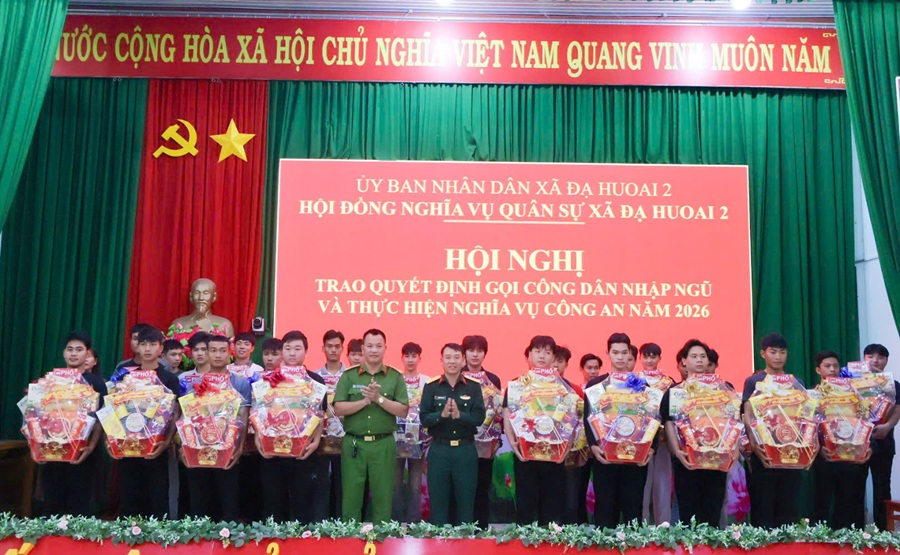 Song song với đó, Công an xã đã trao Quyết định gọi nhập ngũ và tặng quà động viên các thanh niên thực hiện nghĩa vụ tham gia Công an nhân dân năm 2026, góp phần khích lệ tinh thần, tiếp thêm động lực để thanh niên yên tâm lên đường làm nhiệm vụ.