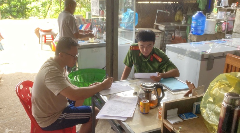 Công an xã tuyên truyền PCCC tới từng hộ gia đình.