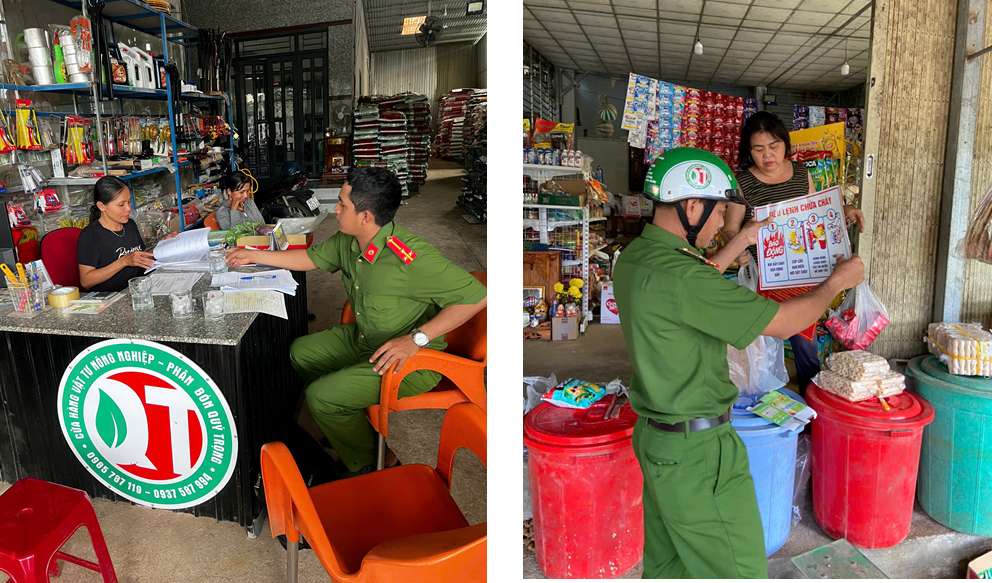 Công tác tuyên truyền được triển khai bằng nhiều hình thức phong phú. Lực lượng Công an xã thường xuyên tổ chức tuyên truyền trực quan, dễ hiểu thông qua các buổi tuyên truyền lưu động, phát tờ rơi, áp phích tại cổng trường học, nhà văn hóa; đồng thời trực tiếp đến từng hộ dân để hướng dẫn các quy tắc an toàn cơ bản như tắt bếp, ngắt điện khi ra khỏi nhà, không tích trữ chất dễ cháy và sử dụng các thiết bị PCCC tại chỗ như bình chữa cháy xách tay.