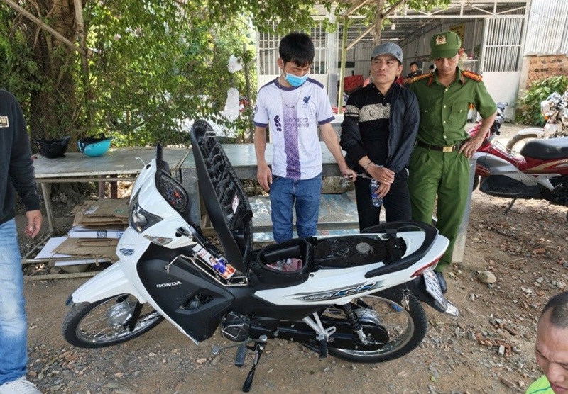 Đối tượng Võ Phạm Hùng (áo đen) tại thời điểm bị bắt